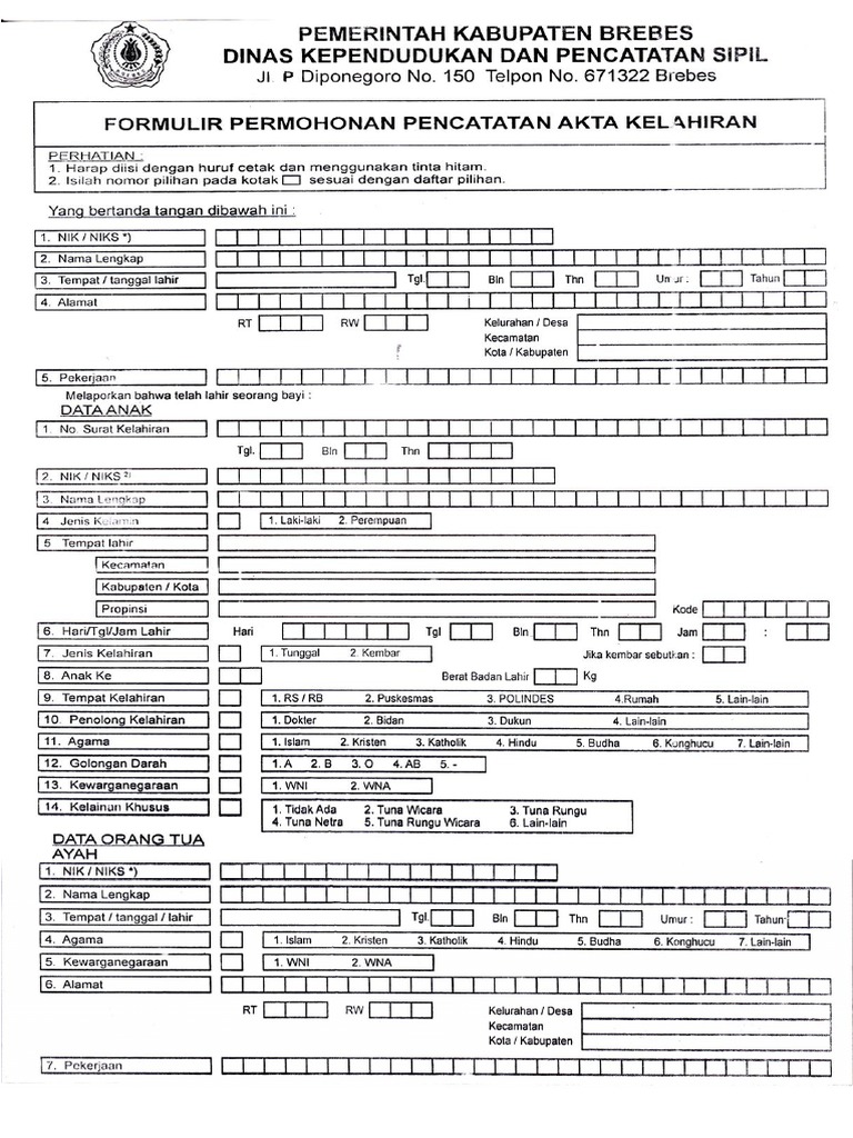 Download Formulir Dinas Kependudukan Dan Pencatatan Sipil