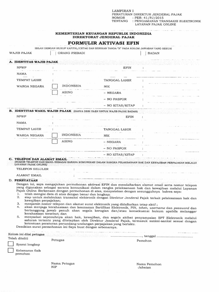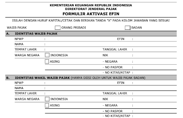 Contoh Pengisian Formulir Aktivasi Efin Orang Pribadi