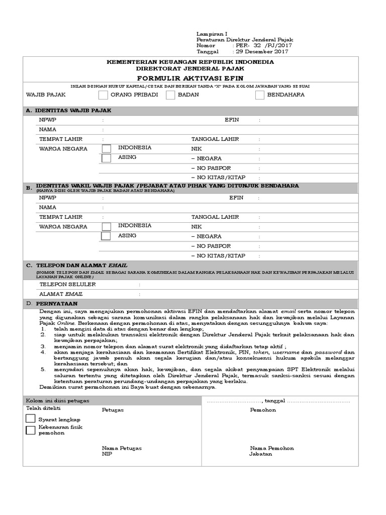 Formulir Aktivasi Efin Kementerian Keuangan Republik Indonedia Direktorat Jenderal Pajak