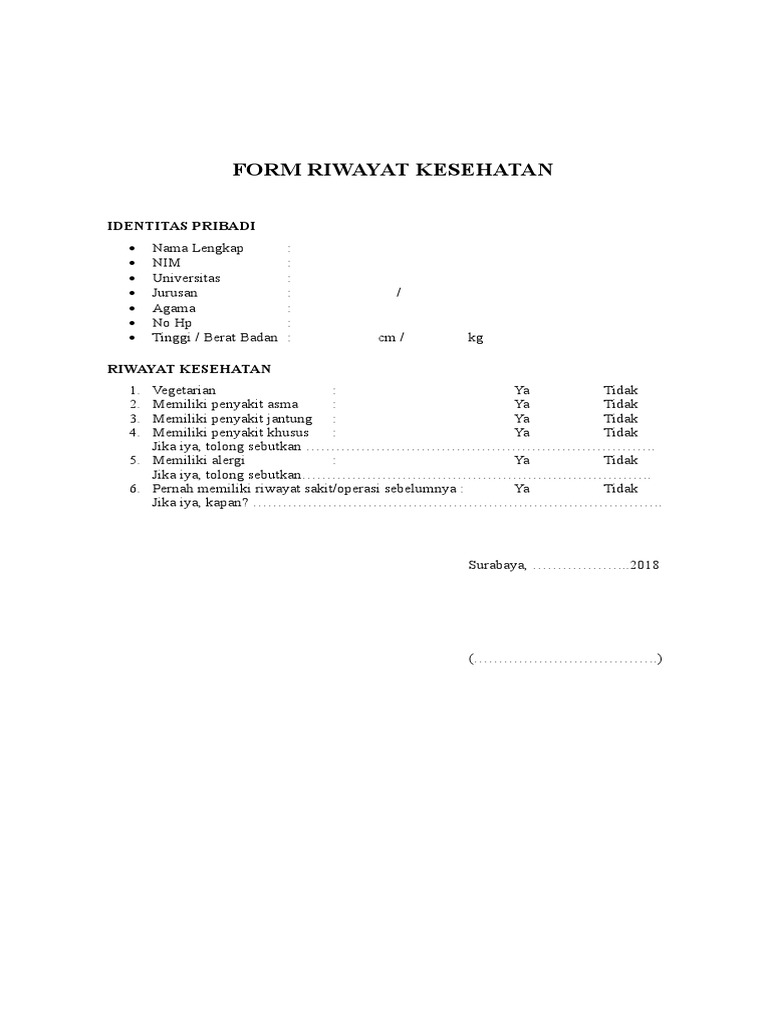 Form Riwayat Kesehatan