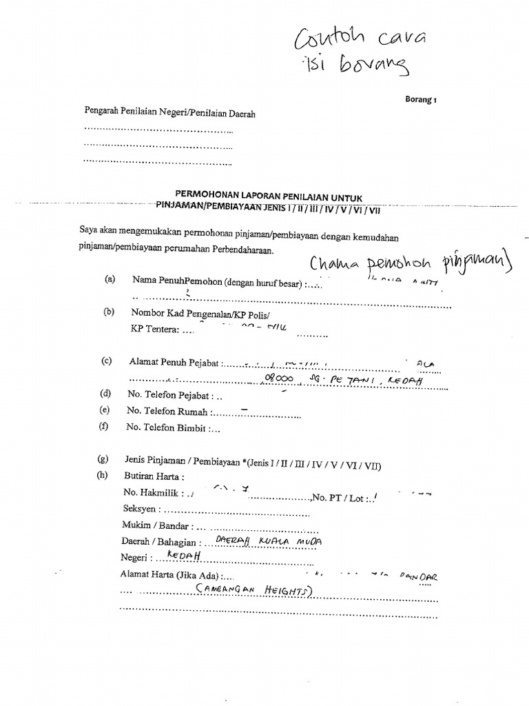 Contoh Cara Isi Borang