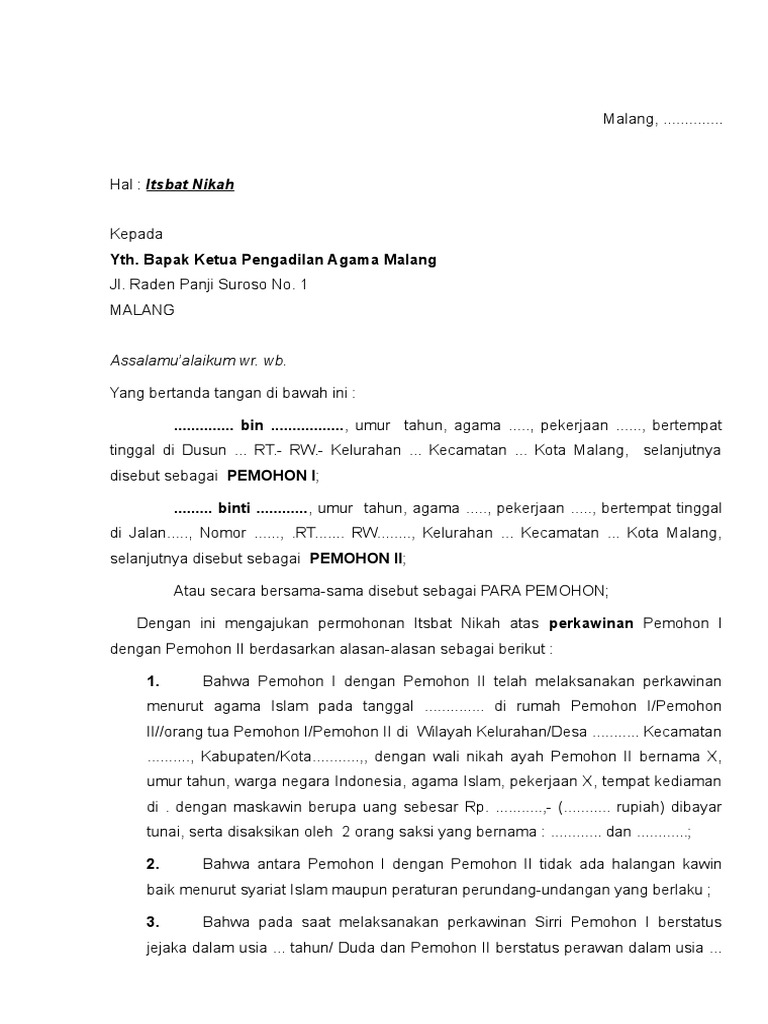 Contoh Permohonan Itsbat Nikah
