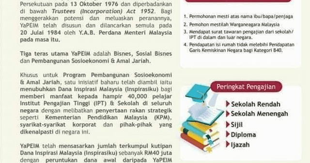 Permohonan Bantuan Sekolah Inspirasiku Yapeim 2020 Secara Online Media Kabar Malay