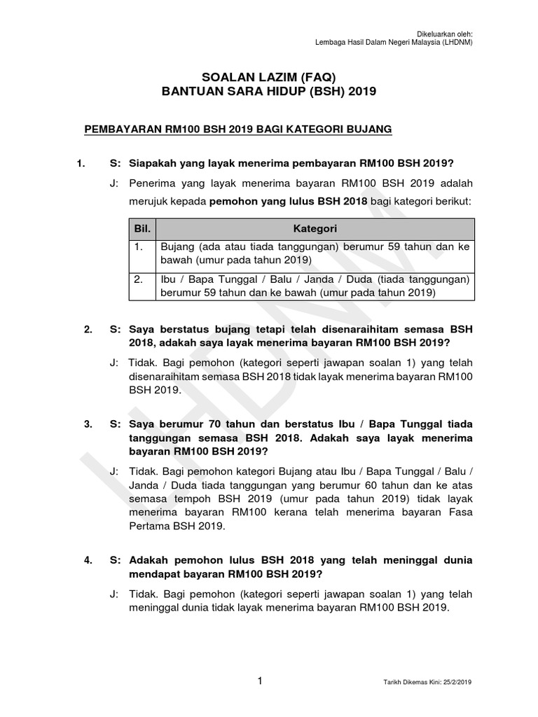 Soalan Lazim Faq Bantuan Sara Hidup Bsh 2019 Dikeluarkan Oleh Lembaga Hasil Dalam Negeri Malaysia Lhdnm