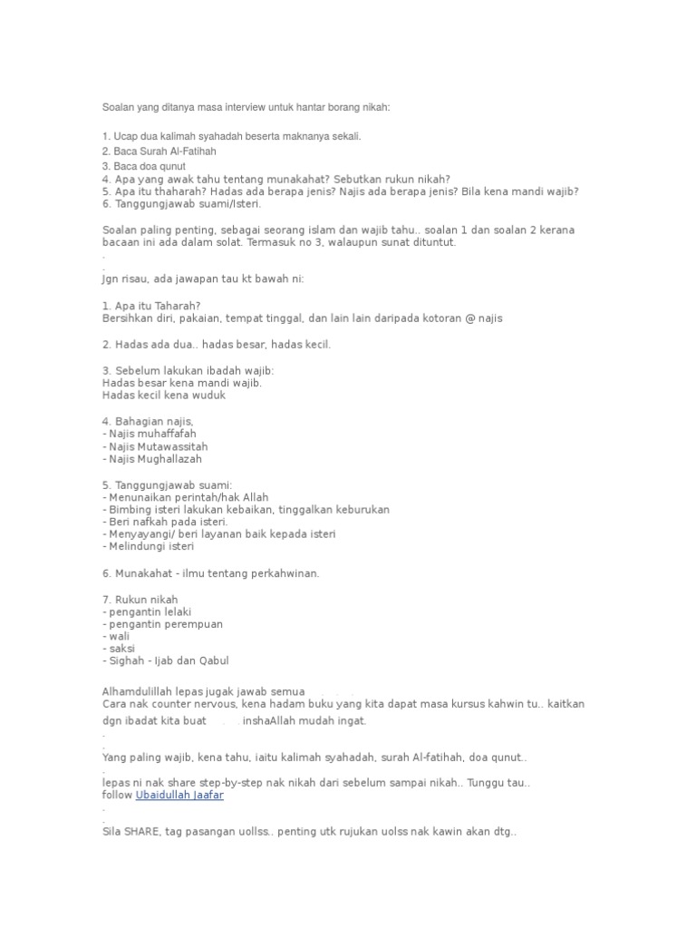 Bila Hantar Borang Nikah Ini Soalan Interview Yang Ditanya